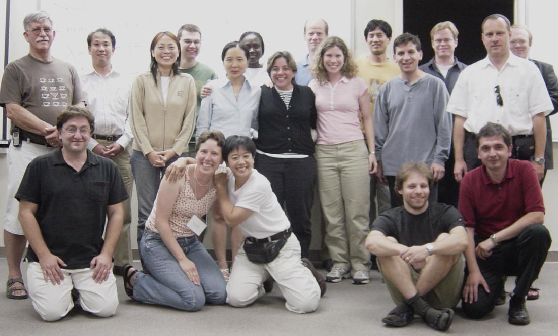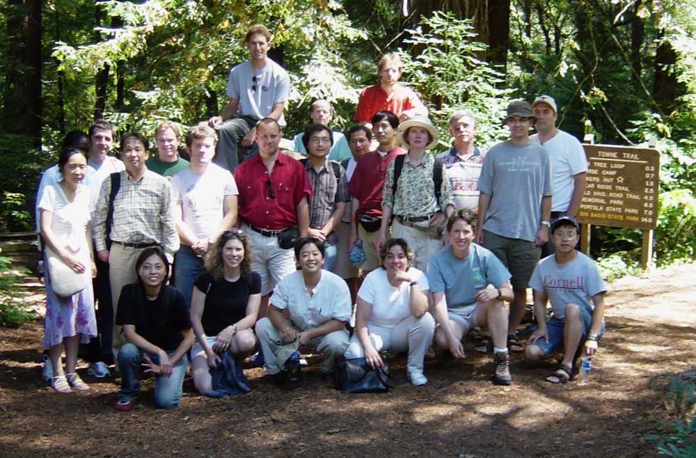Pictures of the workshop participants at AIM and in the redwoods.