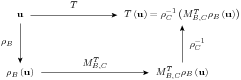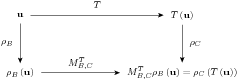 The alternative conclusion of this result might be even more striking. It says that to effect a linear transformation ($T$) of a vector ($\vect{u}$), coordinatize the input (with $\vectrepname{B}$), do a matrix-vector product (with $\matrixrep{T}{B}{C}$), and un-coordinatize the result (with $\vectrepinvname{C}$). So, absent some bookkeeping about vector representations, a linear transformation is a matrix. To adjust the diagram, we "reverse" the arrow on the right, which means inverting the vector representation $\vectrepname{C}$ on $V$. Now we can go directly across the top of the diagram, computing the linear transformation between the abstract vector spaces. Or, we can around the other three sides, using vector representation, a matrix-vector product, followed by un-coordinatization.
