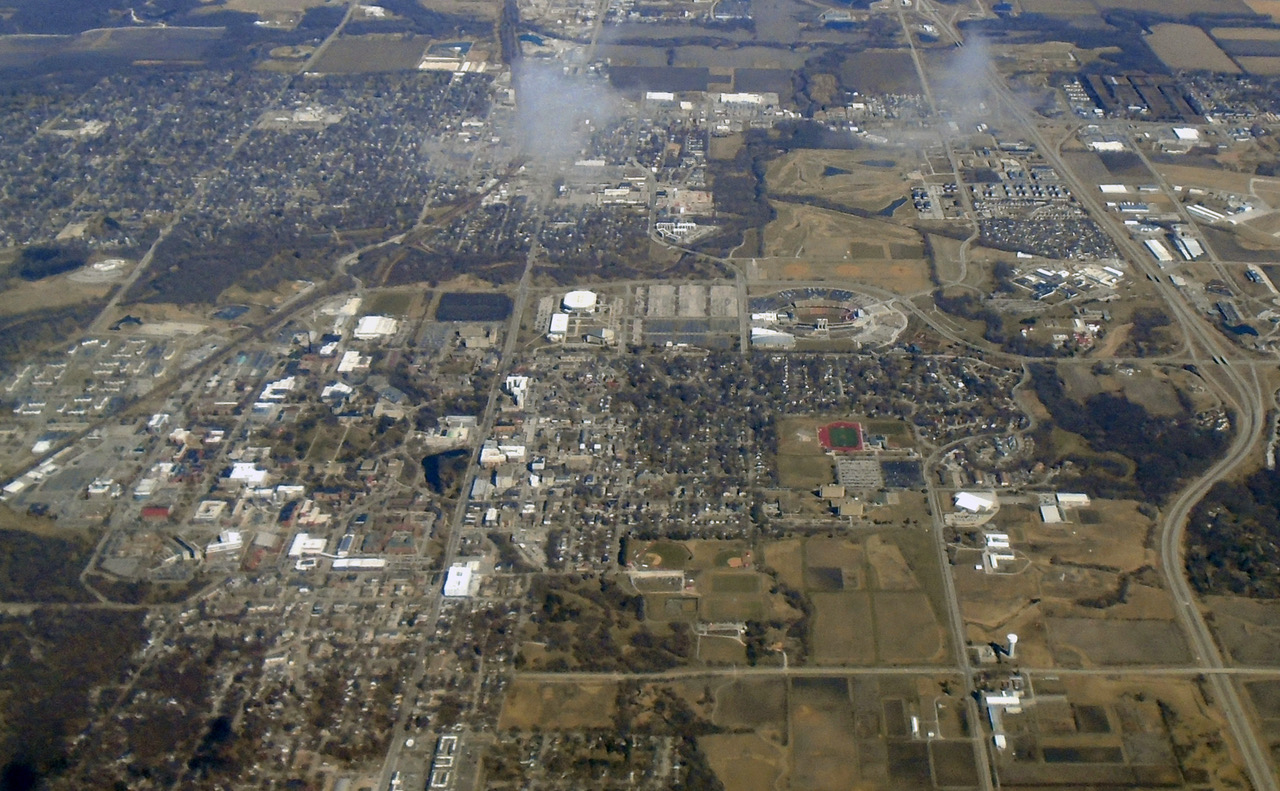 Iowa State University seen flying from MSP to DSM 4/7/18. Carver Hall (home of the Math Dept), Lake Laverne, Memorial Union, Hilton Coliseum, CY Stevens Auditorium, Jack Trice Stadium can all be seen (as can many others).